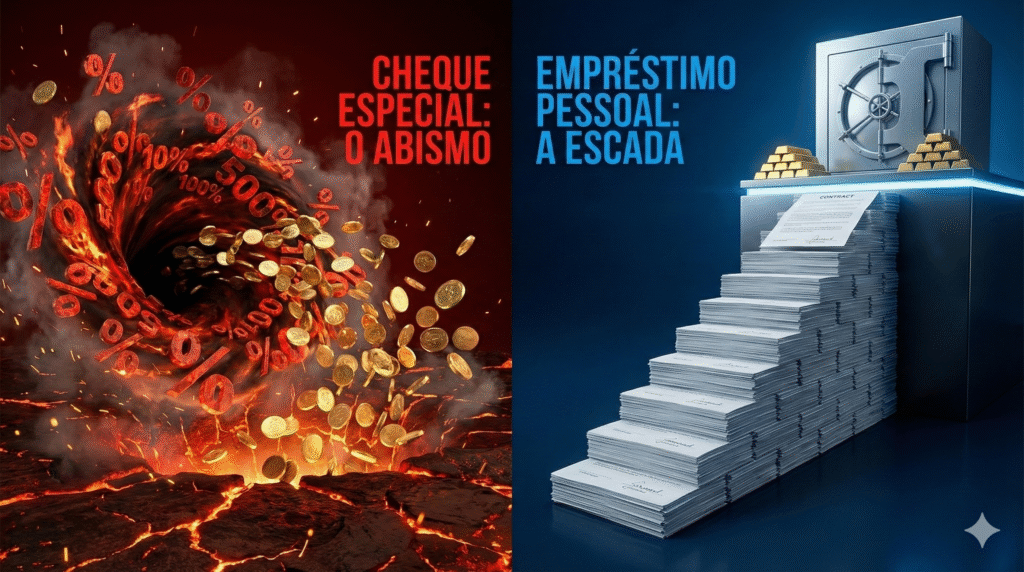 | Critério | Cheque Especial (A Armadilha) | Empréstimo Pessoal (A Ferramenta) |